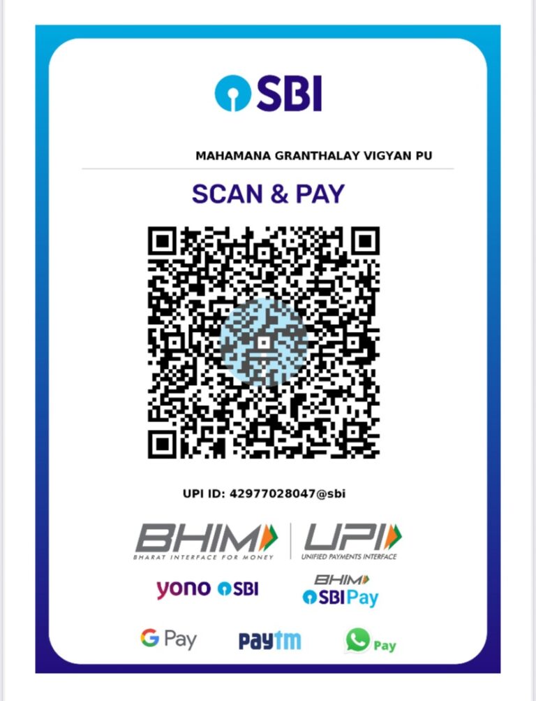 - For offline payment, please issue a cheque/DD in favour of Mahamana Library Science Alumni Association and send it to Mahamana Library Science Alumni Association, Lane No. 2, Pragyapuri Colony, Jangampur, Susuwahi, Tehsil Sadar, Varanasi, Uttar Pradesh-221011.